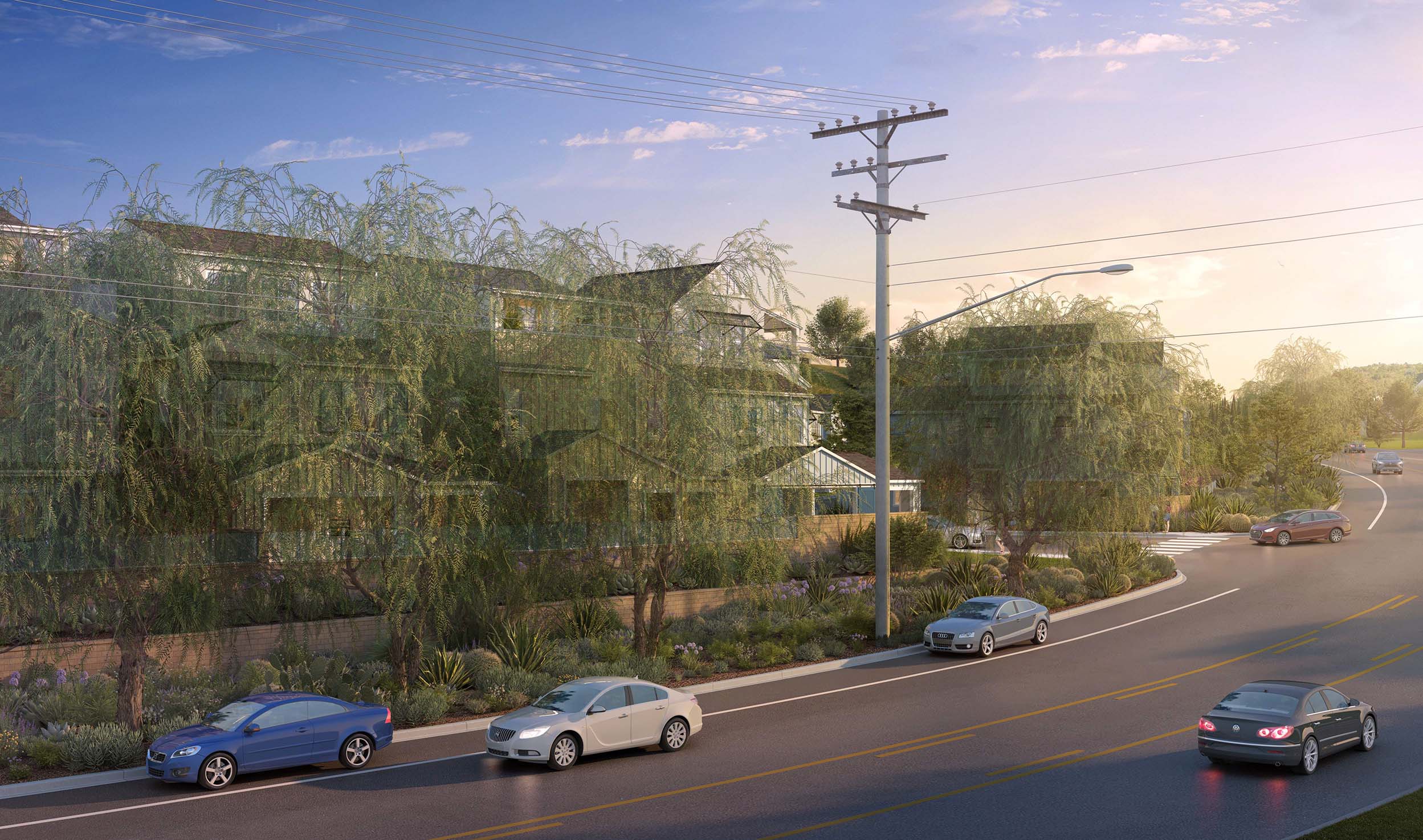 The project is thoughtfully and intentionally designed to blend in with the surrounding neighborhood, with the project’s perimeter significantly set back from any immediate neighbors. Much of the property will be shielded from view by a tall, lush wall of trees surrounding the site, including many of the existing perimeter trees that will be preserved. The residential structures will remain lower to the ground, ranging from three to four-story buildings that will have minimal impact on views and nearby neighbors.